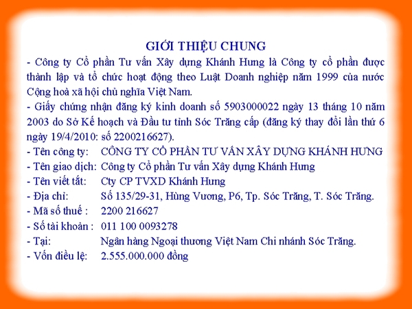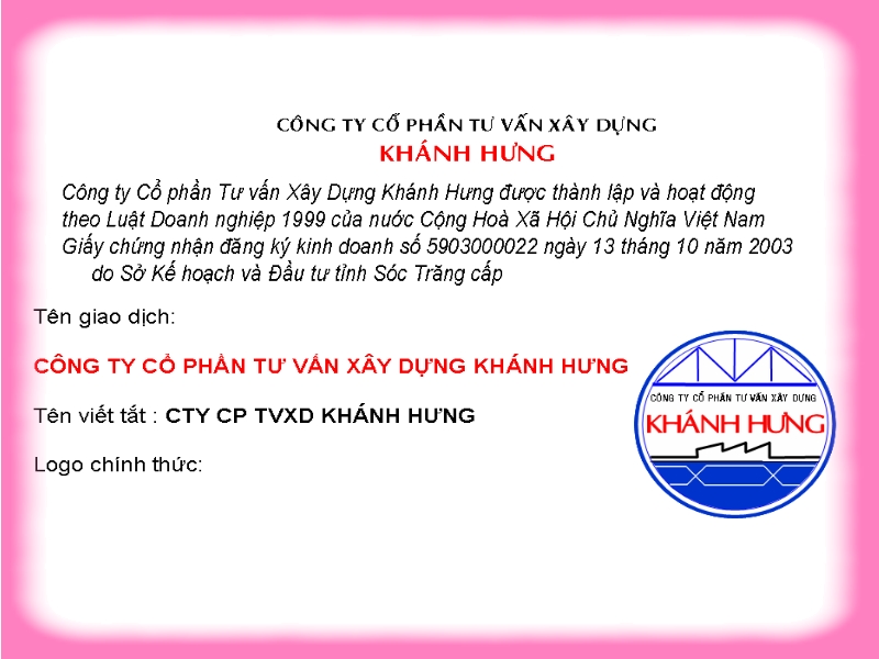 CÔNG TY CỔ PHẦN TƯ VẤN XÂY DỰNG KHÁNH HƯNG